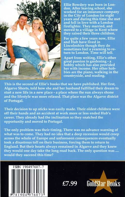 Synopsis:Algarve Shorts (2003) is a true story about a young British couple's attempts to make a new start in life in a new country. They had the opportunity, and the inclination, so they set off on the great adventure that took them to the Algarve in Portugal. Not everything was perfect and they eventually had to return to the United Kingdom but the experience left them all with many memories - some good, some bad - memories which Ellie recounts in her own inimitable style. Taster:A New Life I could sense his success as soon as I answered the telephone. “Well, I've done it! All signed and sealed. The business is ours. We can start packing!” The enthusiasm in Hub's voice was infectious and I found myself charged with excitement as he went on to recount his long weekend in Algarve. He started with the weather. Cloudless blue skies the whole weekend, the temperature never dropping below twenty degrees centigrade, yet it was still only February. He knew that would go down well! Next, he talked about the carpentry workshops – our carpentry workshops - situated amongst orange and lemon groves, surrounded by open countryside. He spoke of the friendliness of the workers, not just the carpenter lads, but the fruit pickers as well. Everyone had made him so welcome. When he got round to describing the spectacular Algarve coastline, the pretty little bays and colourful fishing boats, I was lost in a dream of this lovely country that we were about to make our new home. When I finally put the phone down, I sat back in my chair thinking of how we had got to this point in our lives. It had always been a dream of ours to get away someday. To start afresh. We hadn’t thought it would happen quite so quickly but fate had lent a hand, though not quite in the way we had expected! Hub had been a London fireman for twenty-three years and had always loved the job. Until the night he slipped from a rooftop and damaged his left leg. While it hadn’t disabled him permanently, it was serious enough for him to be invalided out of the brigade. The lump sum he got, together with a good pension, gave us the means and opportunity to seek out the new life adventure we had always longed for. Deep down, I had some reservations that he might miss his amazing, fulfilling career but, for the moment, there was nothing to stand in our way. We had the green light! I had seen the advertisement for the carpentry business several times and mentioned it to Hub. After we discussed the pros and cons, he plucked up the courage to call the Algarve number. It turned out the vendors were an English couple. They seemed very friendly and within half an hour Hub had arranged to fly out to meet them and take a look at the workshops. I called our young son Jamie and told him Dad had clinched the deal. I saw his eyes light up. He was keen to travel; to see new places and we always thought it would be a wonderful education for him. He was doing very well at his secondary school and had made many friends but he didn’t seem bothered about leaving. This would be a tremendous chance for him to spread his wings and experience life somewhere completely different; perhaps it would even lead to a better career for him. After all, Britain was going into recession and the unemployment figures were rocketing. So mainland Europe might offer better opportunities for all of us. We spent the next couple of weeks making final arrangements for our departure. Outside the weather was cold and frosty and we were still wrapped in winter woollies yet we were packing shorts, T-shirts, mosquito repellent and sun cream! It was all so unreal but incredibly exciting! *** Hub turned the key in the lock for the last time. He gave the door a nudge to make sure it was properly secured then strode to the car and climbed behind the steering wheel. Leaning over he gave me a quick kiss. “Ready, darling?" He glanced in the rear view mirror. "You okay, son?” Son didn't reply and we both turned to look at him. He was already half asleep, snuggled cosily in the back seat with his head on a pillow. We shouldn't have been surprised - it was almost two in the morning. He managed a loud yawn and a muttered, “Yeah. Okay. Night.” Hub glanced around outside the car. “Well, say goodbye to cold, damp Kent. Portugal here we come!” Our ivory coloured BMW roared into life. We took one last look at the cosy cottage that was no longer ours and drove off into the dark quiet countryside. I settled back into my seat trying to relax. It was a long journey to Plymouth and I felt very tired after the previous weeks' preparations. But try as I might, I couldn’t relax. My excitement at the prospect of living in Algarve had now turned into sudden fear of the unknown. What had we done? For the past three weeks I had been swept along by this dream. But this was no longer a dream. This was fact. This was reality. I glanced at Hub but he hadn't noticed my sudden anxiety. He was concentrating totally on the dark road ahead. I took a quick look at Jamie. He was sleeping as only the young can sleep. Without worry, without fear. He was a picture of contentment: I was struggling with the doubts that were now welling deep inside. A cold sinking feeling gripped the pit of my stomach and would not go away. As we drove further into the night it suddenly hit me. All that we possessed in the world was here in this car! Some books, music cassettes, talking books, clothes, a TV set. That was it! We had no home and not a stick of furniture. Sure there was money in the bank but most of that would go on the business. I already felt bereft, vulnerable, and cold. And now I felt decidedly sick! A couple of hours later we stopped to eat the bacon and egg sandwiches I'd made for our breakfast. Daylight was beginning to show in the eastern sky and a soft grey mist was hovering over the Hampshire countryside. I shivered a little. It was the end of February yet the bare trees said that winter was far from ove
