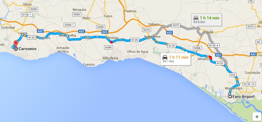 Faro Airport to Carvoeiro using the EN125